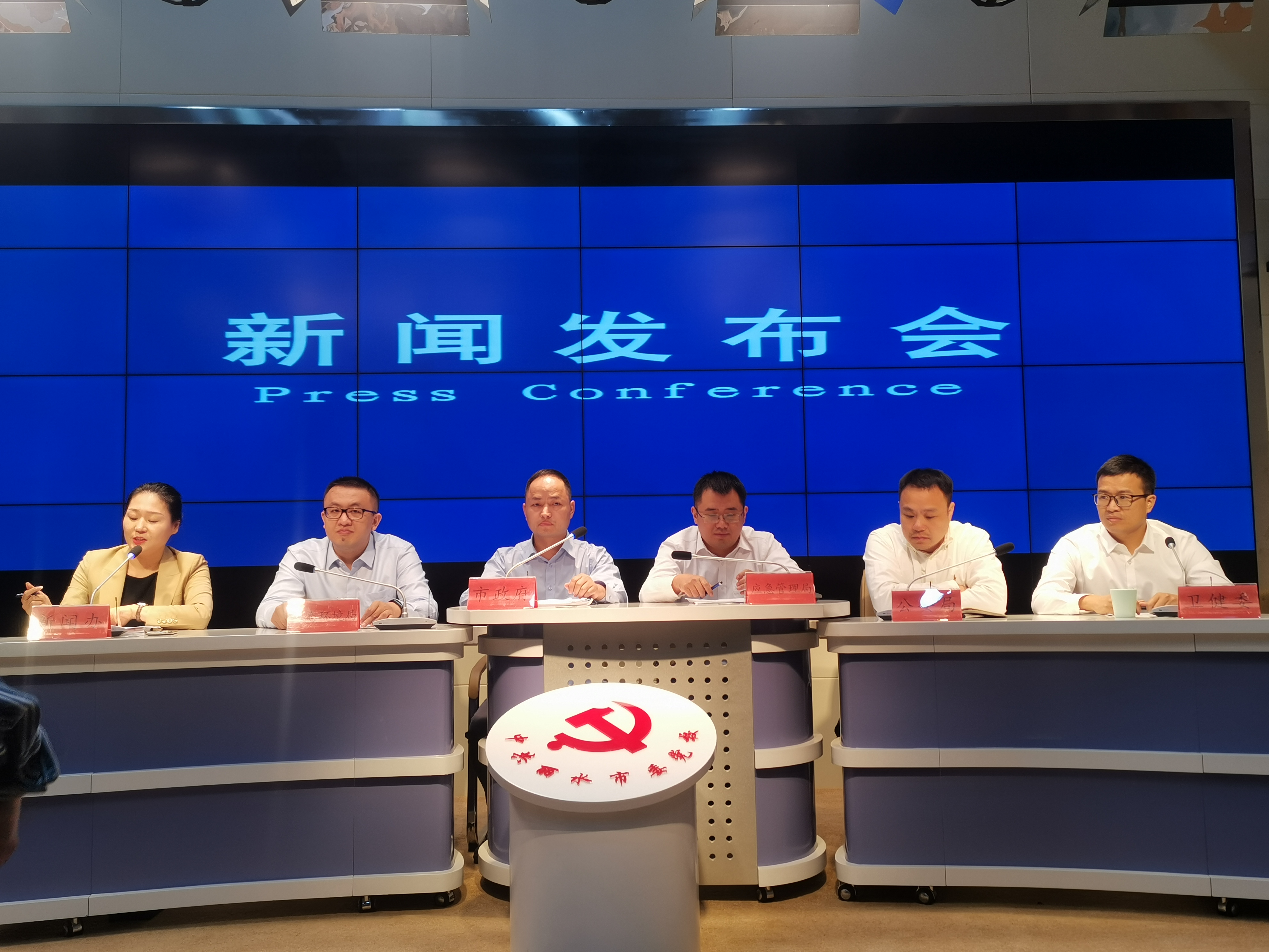 模拟新闻发布会以某市发生制药厂爆炸事件为演练案例,6名学员分别扮演“常务副市长”“新闻办主任”“生态环境局局长”“公安局局长”“应急管理局局长”“卫健委主任”等角色,针对现场“记者”提问进行回答。“记者”角色也均由学员扮演。