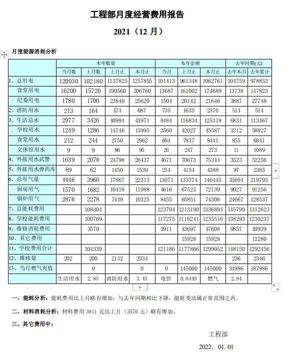 2021年12月能耗统计