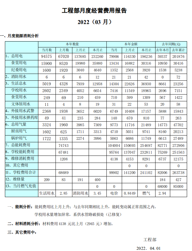 2022年3月能耗统计