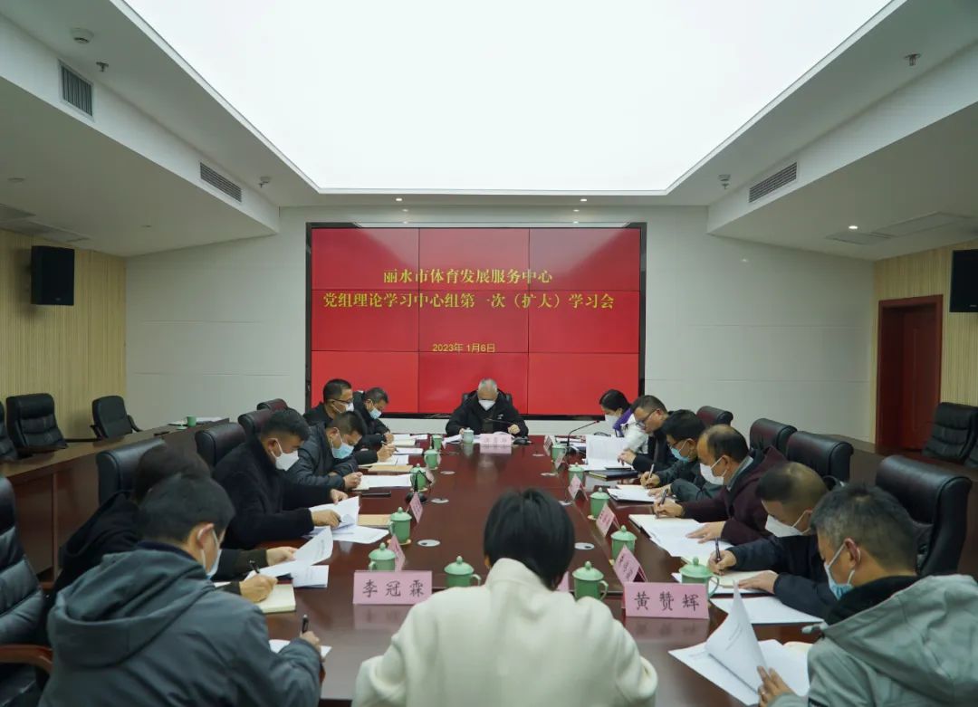 1月6日下午,丽水市体育发展服务中心召开中心党组理论学习中心组第一次(扩大)学习会,传达学习习近平总书记在中央经济工作会议的重要讲话精神、省委十五届二次全体(扩大)会议暨省委经济工作会议精神、全市领导干部会议精神、市委五届三次全会精神等内容,并部署落实相关工作。中心党组书记、主任洪勇华主持会议,中心班子成员、各处室及下属单位负责人、中心机关相关人员参加。