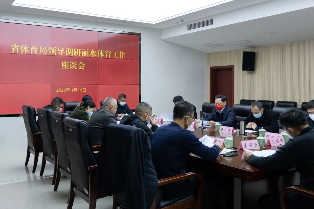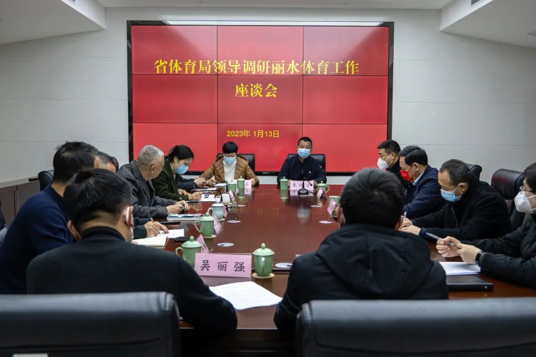 1月13日,省体育局党组成员、副局长占旭刚带队来丽开展“大调研大走访大服务大解题”活动。中心党组书记、主任洪勇华,中心党组成员、综合处处长吴邦林陪同调研。中心有关处室、市体育运动训练中心、莲都区文广旅体局相关负责人参加座谈会。