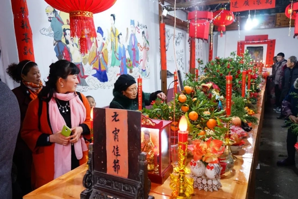 小竹溪“摆祭”是松阳当地特色过年习俗之一。小竹溪“摆祭”也称“送灯”,即将“守护神”徐侯从村外的五龙山墨口殿请进村,经过一天祭祀后,晚上全村人打着灯笼将其送回殿中。每年农历正月十五至正月底间,择一黄道吉日举行。由村中轮流定出元宵摆祭负责人,全村以户为单位,搬出八仙桌,在村道上排成长队,前后五六十桌,酷似长龙,很是气派。桌子分别摆上鸡鸭鱼肉、糕点水果等各式荤素祭品,村民点上香烛,祈求当地的神灵徐侯大王对百姓的庇佑,祈望新年安康吉祥。